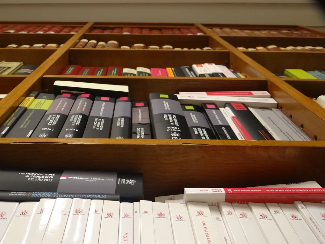 Actualmente cuenta más de 1000 volúmenes, varios títulos de publicaciones periódicas y bases de datos con contenido legislativo, jurisprudencial, doctrinal, de modelos y formularios.